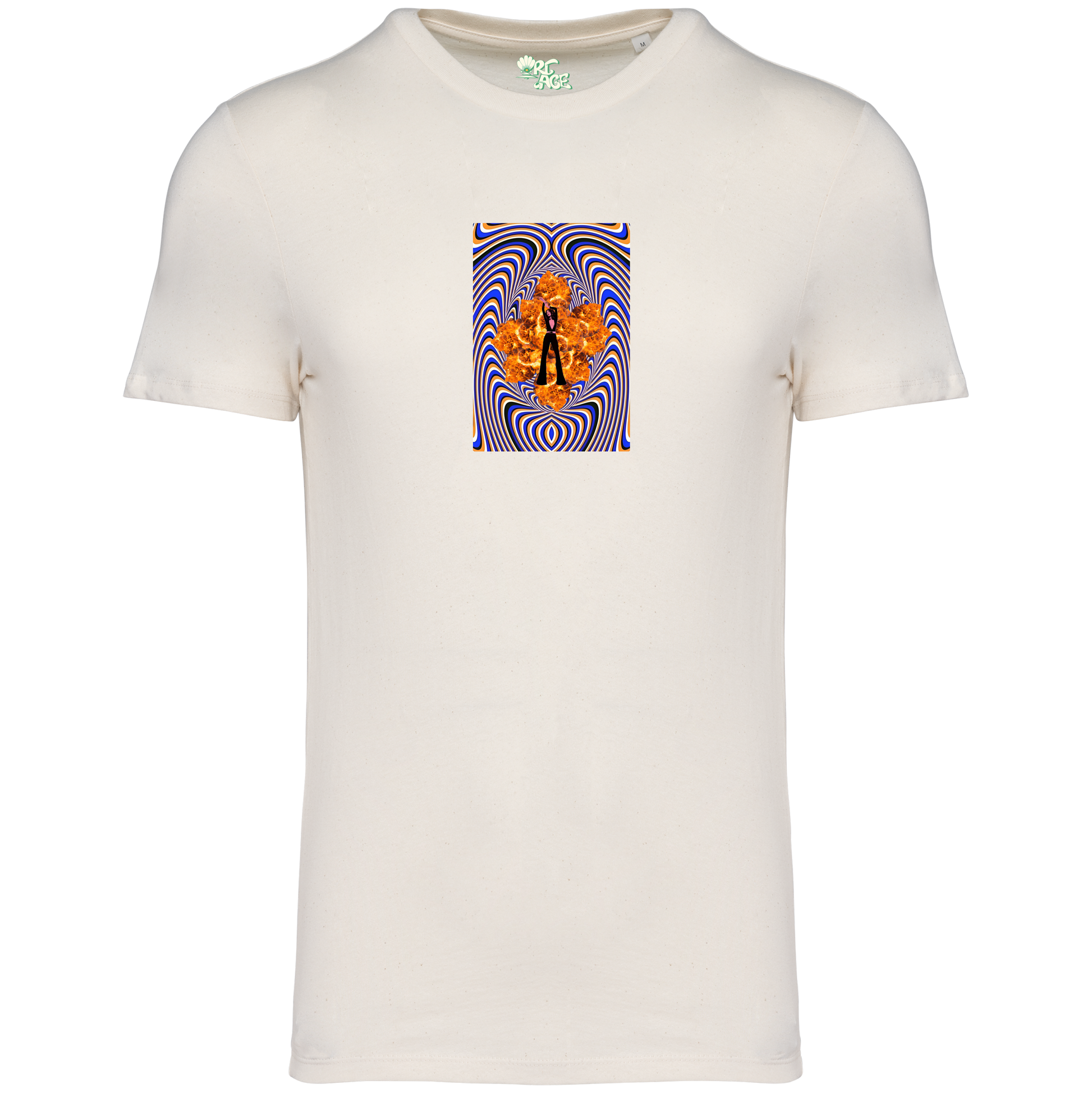 Le t-shirt funky disco 100% coton biologique biologique coupe ajustée couleur crème.