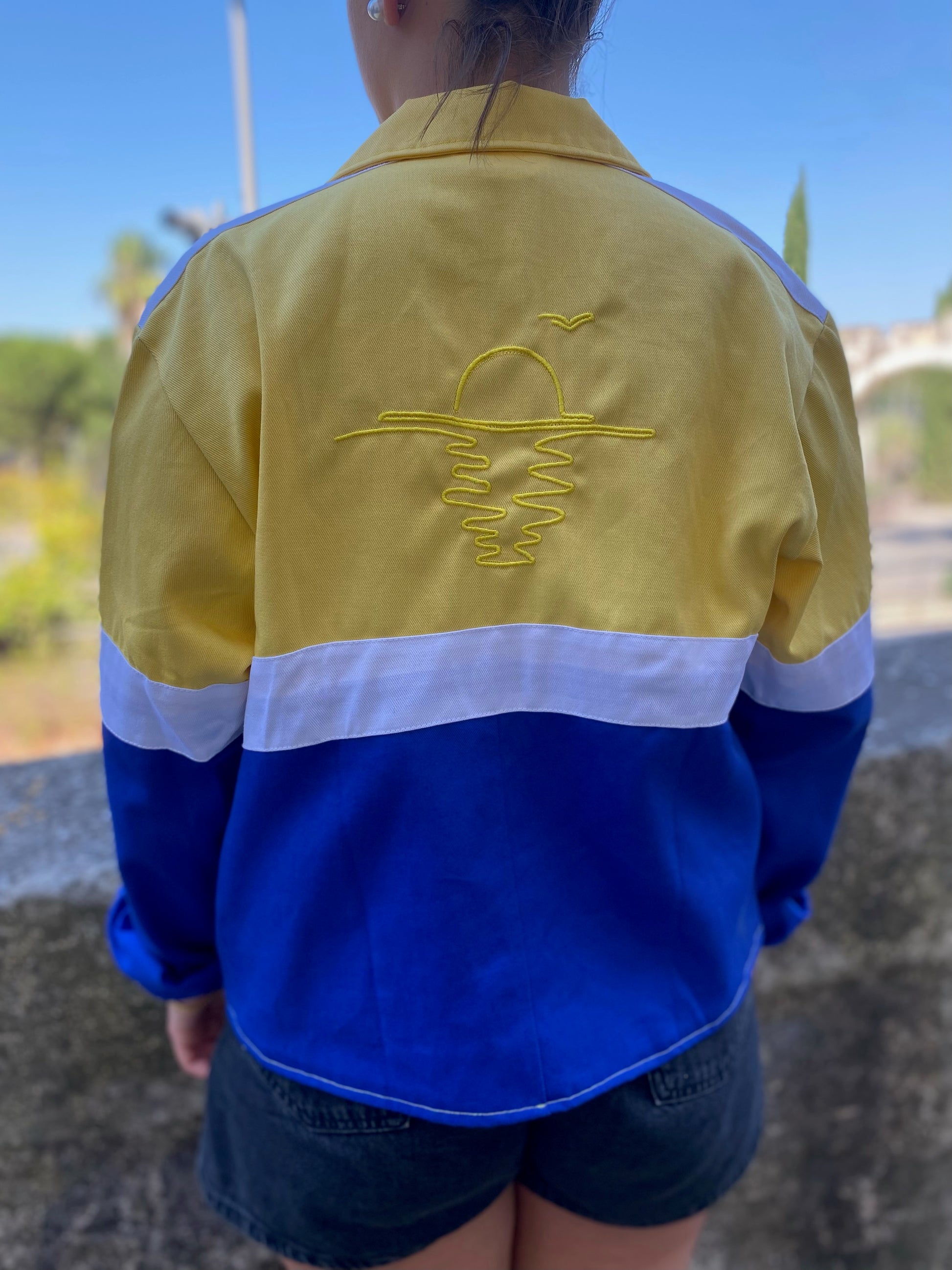Bleu de travail, made in France d'occasion. Broderie cœur et dos made in Artage.