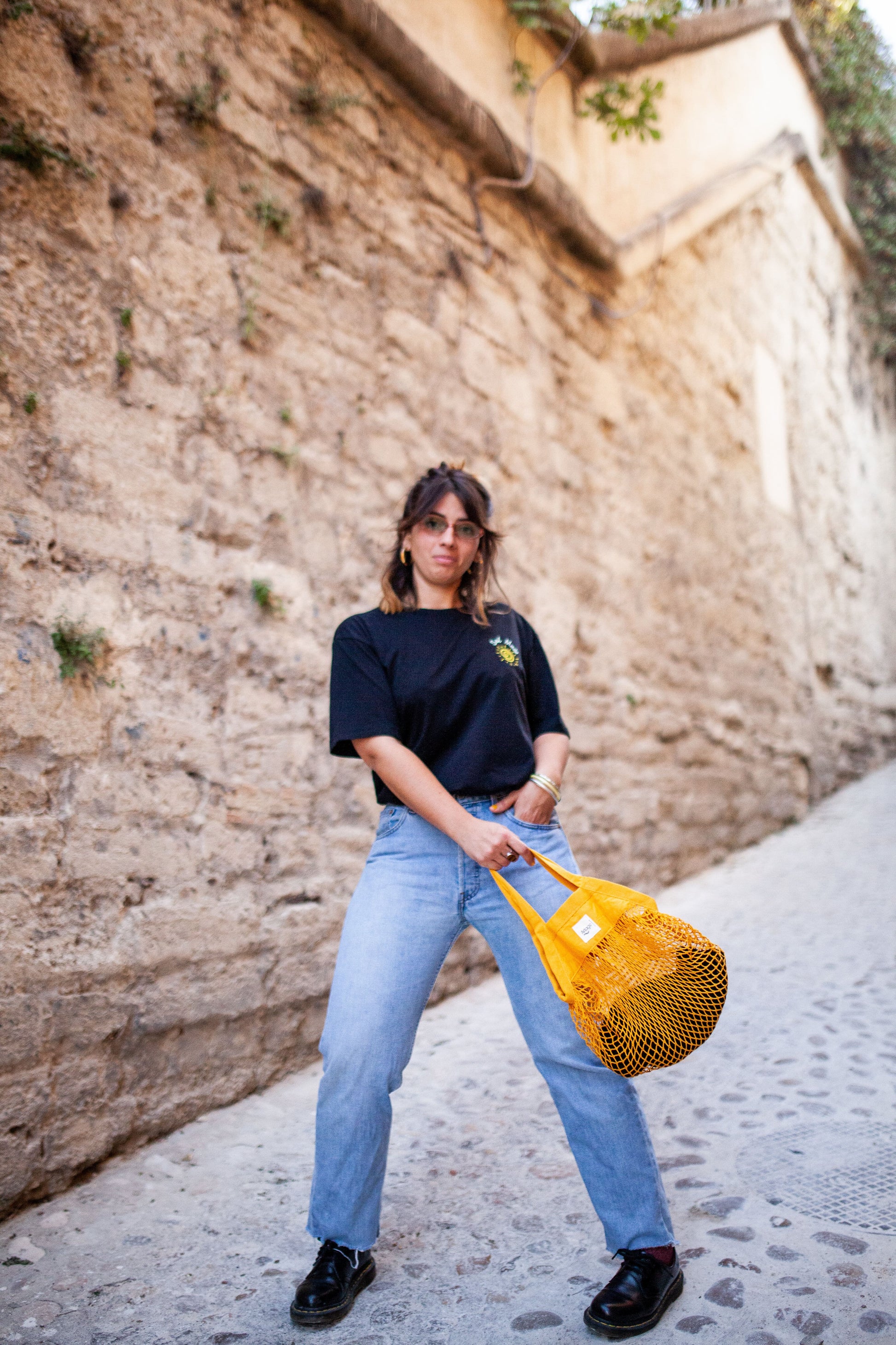 Le sac filet 100% coton BIO peut contenir jusqu'à 6 kg. Taille unique : 34 x 34 cm