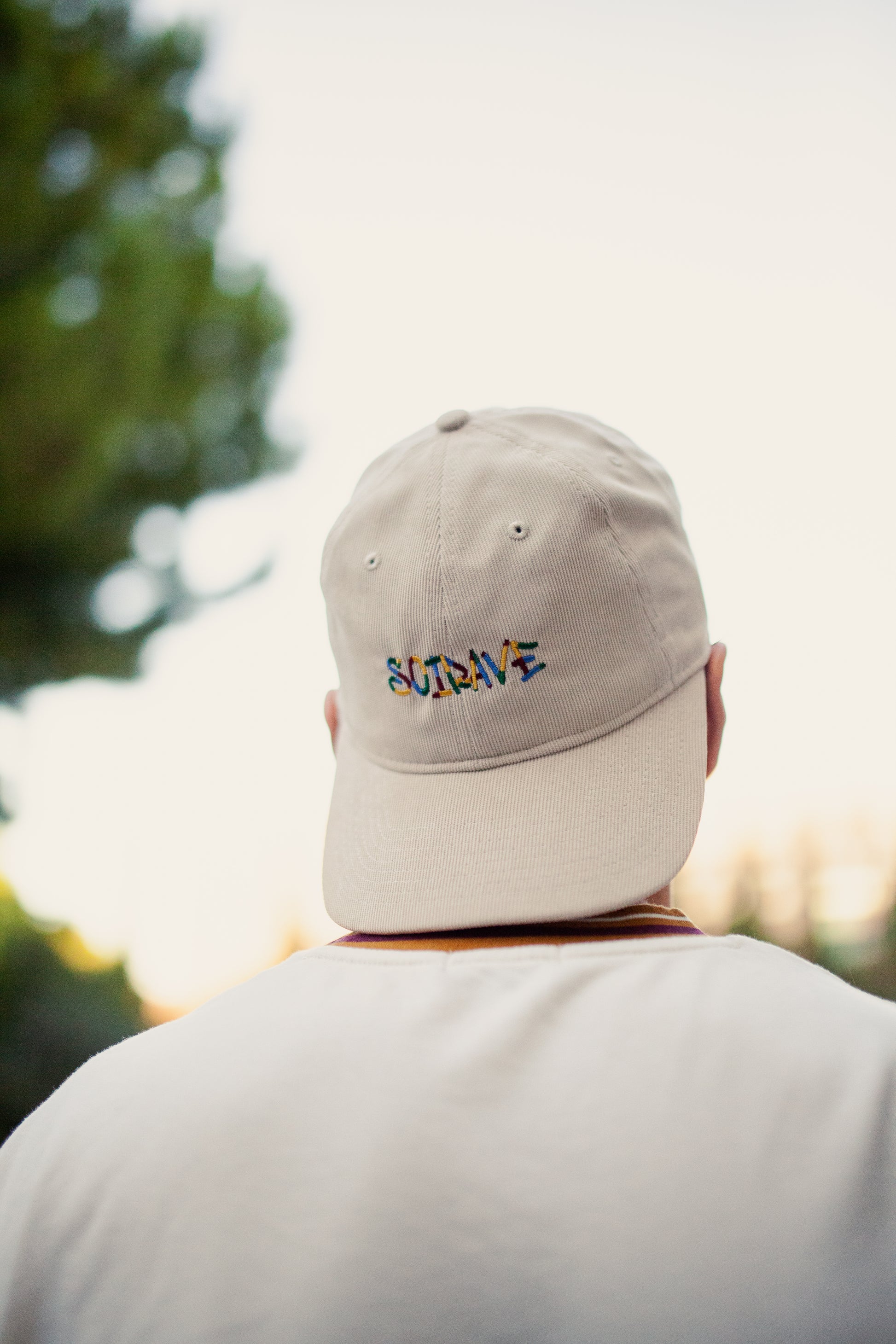 C'est quoi SOIRAVE ? "SOI" pour soirée, "RAVE" pour rave party ! Alors, chaud pour SOIRAVER ? 🍻 Casquette en velours couleur crème, broderie au fil multicolore jaune, vert et bordeaux.