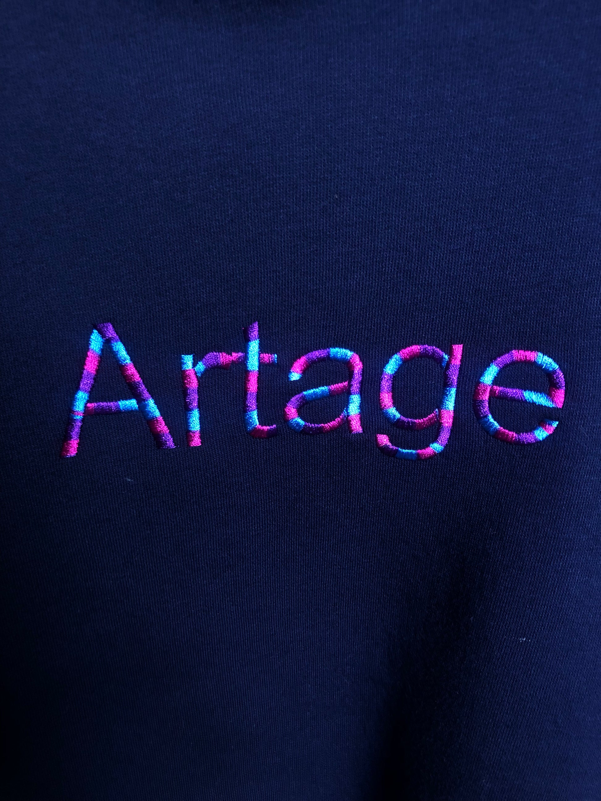 Sweat bleu marine brodé Artage à la poitrine. Taille L. Crée à Montpellier.
